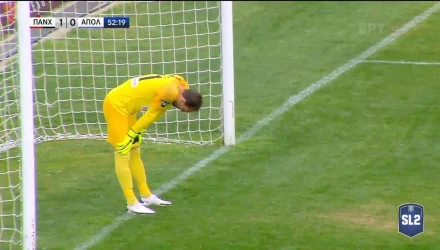 Ο τερματοφύλακας του Απόλλωνα Λάρισας, Παναγιώτης Γλύκος υπέπεσε σε ένα τραγικό λάθος που έδωσε την ευκαιρία στην Παναχαϊκή να προηγηθεί με 1-0.