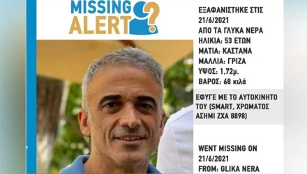 Η δήλωση εξαφάνισης έγινε στις 21 Ιουνίου στο Α.Τ. Παλλήνης, με το πρώτο 24ωρο ερευνών να έχει παρέλθει άκαρπο, ενώ μετά από σχετικό αίτημα των συγγενών του σήμερα Τρίτη, το «Χαμόγελο του Παιδιού» εξέδωσε Missing Alert. «Στις 21 Ιουνίου 2021 εξαφανίστηκε από την περιοχή Γλυκά Νερά, ο Σταύρος Δογιάκης, 53 ετών.