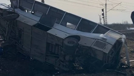 Το λεωφορείο ακινητοποιήθηκε πάνω στις ράγες, την ώρα που επιχειρούσε να διασχίσει τη σιδηροδρομική διάβαση, όπως αναφέρουν δημοσιεύματα ρωσικών μέσων ενημέρωσης.