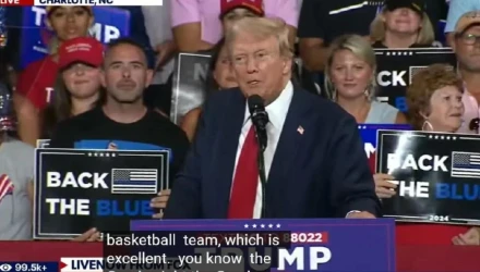 Αρχικά απευθυνόμενος στον μεγάλο αριθμό των ανθρώπων που συγκεντρώνονται στις ομιλίες του και με αυτή την αφορμή σχολίασε και το γήπεδο των Μιλγουόκι Μπακς, όπου βρέθηκε πριν από λίγες μέρες. Κάπου εκεί έκανε και μία αναφορά στον Γιάννη Αντετοκούνμπο, χωρίς όμως να πει το όνομά του.
