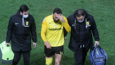 Ο Έλληνας φορ που έχει πετύχει το μοναδικό γκολ του αγώνα μέχρι στιγμής, τραυματίστηκε σε μια εναέρια διεκδίκηση της μπάλας.