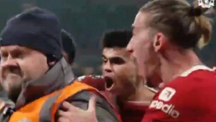 Οι παίκτες των reds ξέσπασαν σε έξαλλους πανηγυρισμούς, με τον Έλληνα αριστερό μπακ να ταρακουνά από τον ενθουσιασμό του τον σεκιούριτι του γηπέδου!