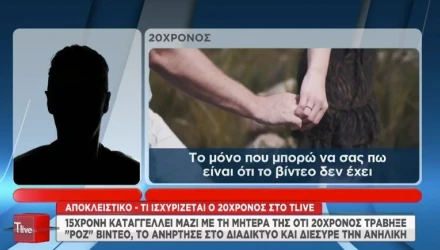 «Το μόνο που μπορώ να πω είναι ότι το βίντεο δεν έχει διαρρεύσει από εμένα. Όλα τα έχουν κάνει οι φίλες της 15χρονης. Περιμένω να με καλέσει η αστυνομία να πάω για κατάθεση για να δώσω ονόματα. Μια φορά τη γνώρισα την 15χρονη και μία φορά βρεθήκαμε πριν από αρκετούς μήνες, δεν την ξαναείδα. Γνωριστήκαμε μέσω μιας φίλης της. Αυτό το βίντεο το έχω δει και δεν φαίνεται κάτι. Εγώ έμαθα για το βίντεο από κάποιες κοπέλες που με συναντούσαν έξω και μου έλεγαν διάφορα. Απορώ πως η μητέρα της κατάλαβε ότι το έχω κάνει εγώ. Εγώ δεν τράβηξα το βίντεο και δεν απεικονίζομαι στο βίντεο και δεν διέρρευσα το βίντεο. Γι’ αυτό περιμένω να πάω στην αστυνομία για να γίνουν όλα όπως πρέπει. Εμείς δεν απειλήσαμε κανέναν. Σε εμένα τηλεφώνησαν και με απείλησαν ακόμη και για τη ζωή μου» αναφέρει ο 20χρονος.