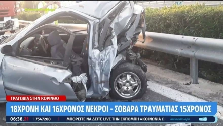 Μία ακόμα ασύλληπτη τραγωδία καταγράφηκε στην άσφαλτο και συγκεκριμένα στην Εθνική Οδό Κορίνθου - Τριπόλεως τα ξημερώματα της Δευτέρας όταν δύο παιδιά 18 και 16 ετών βρήκαν ακαριαίο θάνατο μετά από σύγκρουση του αυτοκινήτου που οδηγούσε ένας 15χρονος.
