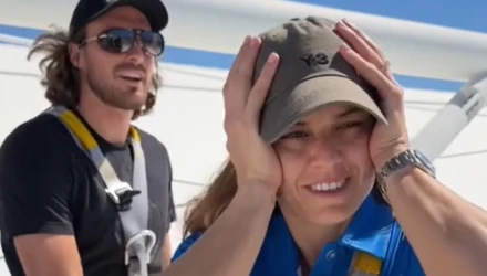 Ο Έλληνας τενίστας φαίνεται να μην έχει κανένα πρόβλημα και μάλιστα έφτασε στην άκρη, κοντά στο κενό, και φώναζε «Ελλάς». Οι κάμερες των διοργανωτών έπιασαν μάλιστα ένα πολύ «αστείο» στιγμιότυπο με την Μαρία Σάκκαρη ελαφρώς φοβισμένη λόγω της υψοφοβίας της και του Στέφανου Τσιτσιπά να την πειράζει.