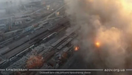 Οι εικόνες, που καταγράφηκαν από drone του τάγματος Αζόφ, απεικονίζει μια σειρά από εργοστάσια να καταστρέφονται σε αεροπορικές επιδρομές. Ρωσικά αεροσκάφη βομβαρδίζουν εργοστάσια και βιομηχανικές επιχειρήσεις και καταστρέφονται ολοσχερώς.