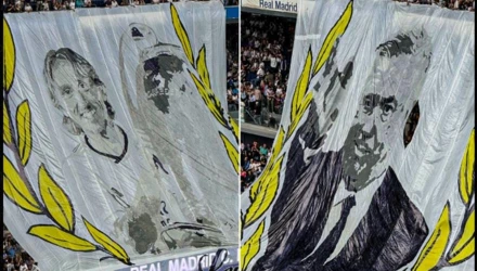 Οι οπαδοί της Ρεάλ ετοίμασαν δύο εντυπωσιακά πανό για να τιμήσουν τον πολύπειρο Ιταλό τεχνικό και τον γερόλυκο Κροάτη.
