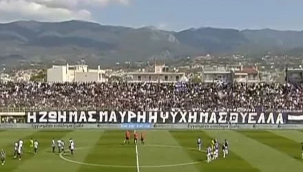 «Η ζωή μας μαύρη, η ψυχή μας θύελλα», αναφέρει χαρακτηριστικά το πανό που έπιανε τη μισή κερκίδα του γηπέδου!