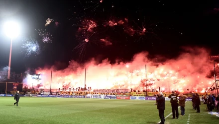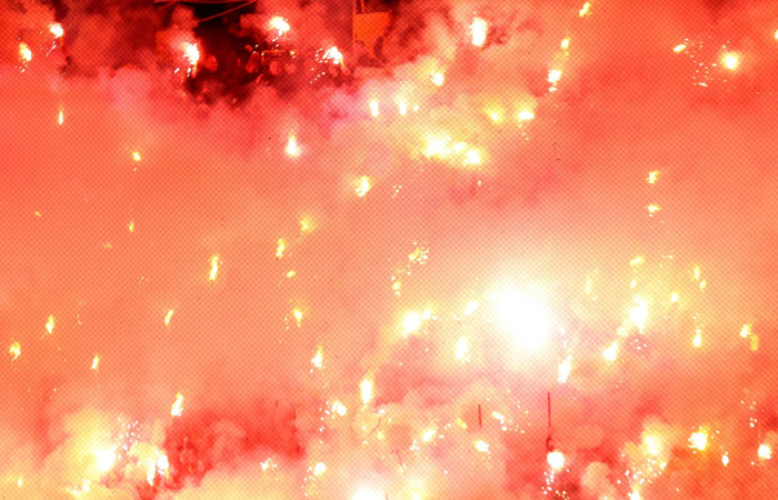 Οι φίλοι των γηπεδούχων άναψαν πυρσούς σε όλο το γήπεδο και δημιούργησαν μια «καυτή» ατμόσφαιρα με στόχο να σπρώξουν τους ποδοσφαιριστές τους στη νίκη επί του μισητού συμπολίτη.