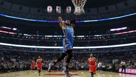 Για ακόμα έναν αγώνα των Θάντερ ο Ράσελ Ουέστμπρουκ συνδύασε την ουσία με το θέαμα, κάνοντας double-double (21 πόντοι, 13 ριμπάουντ) και προσφέροντας στιγμές θεάματος, όπως το κάρφωμα έπειτα από κλέψιμο στο παιχνίδι με τους Σανς.