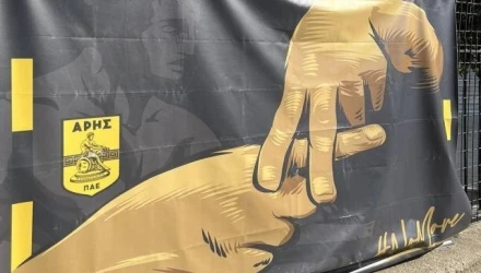 Η κίνηση του Σέρχιο Αραούχο να πανηγυρίσει γκολ στο ''Κλεάνθης Βικελίδης'' σε εκτός έδρας αγώνα της ΑΕΚ με τον Άρη σχηματίζοντας το γράμμα «Α» προς τιμήν του Άλκη Καμπανού, μετατράπηκε σε πανό στη Νέα Φιλαδέλφεια.