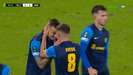 Τσέλιε-ΑΕΚ: Το γκολ του Κοβάσεβιτς με το οποίο ισοφάρισαν οι Σλοβένοι