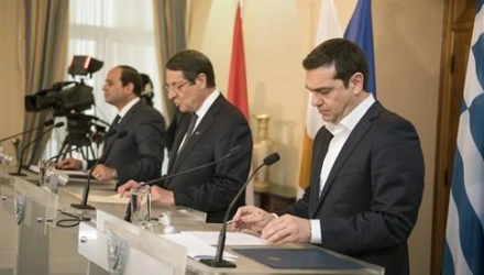 Ελλάδα, Κύπρος και Αίγυπτος αποτελούν πυλώνες ασφάλειας σε μια ταραχώδη περιοχή και η συνεργασία μας μπορεί να αποβεί εποικοδομητική τόσο για τις χώρες μας όσο και για την Ανατολική Μεσόγειο, δήλωσε ο Αλέξης Τσίπρας μετά τη λήξη της τριμερούς συνάντησης στη Λευκωσία. Πρόσθεσε ότι προχωρούμε στις διαβουλεύσεις για την οριοθέτηση της ΑΟΖ, όπου κριθεί απαραίτητο και όπου δεν απαιτείται η συνεννόηση και η συνεργασία τρίτων χωρών, στη βάση του Διεθνούς Δικαίου και του Δικαίου της Θάλασσας.