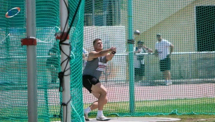 Ο Χρήστος Φραντζεσκάκης πήρε την πρώτη θέση στη σφαιροβολία ανδρών με βολή στα 74.62μ. Ο αθλητής του Κωστή Παπαμαρκάκη άρχισε τον αγώνα του με βολή στα 71.89μ, ενώ ακολούθησαν μια στα 74.24μ, μια στα 72.35μ και η ,ιαστα 73.05μ ενώ είχε και δυο άκυρες βολές. Δεύτερος ήταν ο Σεργκέι Μαργκέιβ με 73,52 μ. και τρίτος ο Τούρκος Οκάν Μπαλτσατσί με 73,34 μέτρα. Ο Μιχάλης Αναστασάκης ήταν τέταρτος με 73,24 μ.