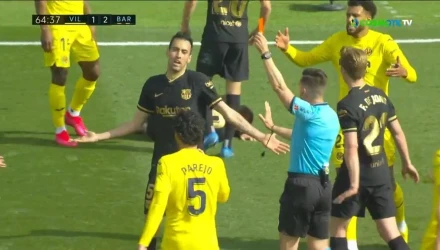 Ο Τριγκέρος κάνει τάκλιν αλλά δεν προλαβαίνει την μπάλα, την οποία τσιμπάει ο Μέσι, με συνέπεια ο παίκτης της Βιγιαρεάλ να βρίσκει με τις τάπες στο καλάμι τον Αργεντινό και να αποβάλλεται