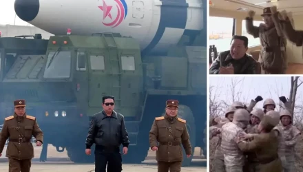 Ο Κιμ Γιονγκ Ουν σε δύο βίντεο που δημοσιεύτηκαν στα social media στην αρχή ενορχηστρώνει και στη συνέχεια θριαμβολογεί για την εκτόξευση «νέου τύπου» διηπειρωτικού βαλλιστικού πυραύλου Hwasong-17, στο πλαίσιο δοκιμής, για την οποία ο Βορειοκορεάτης ηγέτης δήλωσε ότι είχε στόχο να δείξει την ισχύ της πυρηνικής δύναμης της Πιονγκγιάνγκ και να αποτρέψει οποιεσδήποτε στρατιωτικές κινήσεις των ΗΠΑ.