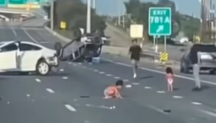 Ο σερίφης της κομητείας Χάρις, Εντ Γκονζάλες, επιβεβαίωσε ότι συνέβη ένα ατύχημα με δύο αυτοκίνητα στον αυτοκινητόδρομο Interstate 10's East Freeway – στο οποίο το ένα από αυτά αναποδογύρισε πολλές φορές, «εκτινάσσοντας» έναν ενήλικα και τα δύο μικρά παιδιά.