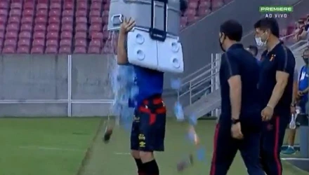Ο Ερνάνες ήταν… ασυγκράτητος στο παιχνίδι της Σπορτ Ρεσίφε με τη Ζουβεντούδε, με το που βγήκε από τον αγωνιστικό χώρο στο 81’ της αναμέτρησης. Ο Βραζιλιάνος μέσος θέλησε να δροσιστεί, αλλά δίχως να του φτάνει ένα μπουκάλι νερό, άρπαξε το φορητό ψυγειάκι του πάγκου και το… κατέβασε όλο πάνω του!