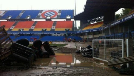 Οι ζημιές στο γήπεδο είναι εκτεταμένες, αφού εκτός από τον αγωνιστικό χώρο έχουν πληγεί οι εξέδρες, τα αποδυτήρια, καθώς και η αίθουσα Τύπου!