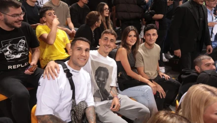 Στο Αλεξάνδρειο Μέλαθρο βρέθηκε το ποδοσφαιρικό τμήμα του Άρη για να παρακολουθήσει τις προσπάθειες της ομάδας μπάσκετ του συλλόγου κόντρα στην Τουρκ Τέλεκομ για τη δεύτερη αγωνιστική του Eurocup.