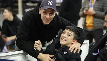 Το κάνει και απόψε, αφού μετά την παρουσία του στο απογευματινό πρόγραμμα της ομάδας πήγε στο Παλατάκι για το ντέρμπι στο μπάσκετ με τον Αρη.