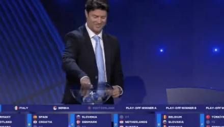 Βογγητά την ώρα της κλήρωσης των ομίλων του Euro 2024
