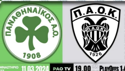 Γυμναστήριο Μετς, Αθήνα, 19.00 (Live Streaming P.A.O. T.V.): Παναθηναϊκός Α.Ο. - Π.Α.Ο.Κ.