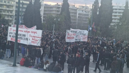 Μπροστά από τη Βουλή παραμένουν τα μπλοκ των φοιτητικών συλλόγων που συμμετέχουν στο πανελλαδικό πανεκπαιδευτικό συλλαλητήριο για το νομοσχέδιο για τα μη κρατικά πανεπιστήμια.