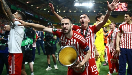 Οι ερυθρόλευκοι κατέκτησαν το Conference League στον τελικό με αντίπαλο τη Φιορεντίνα και έγιναν η πρώτη ελληνική ομάδα που κατάφερε κάτι τέτοιο σε ευρωπαϊκή διασυλλογική διοργάνωση.
