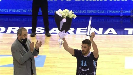 Ο 39χρονος μπασκετμπολίστας αποθεώθηκε από τον κόσμο που βρέθηκε στο κλειστό της Πυλαίας.