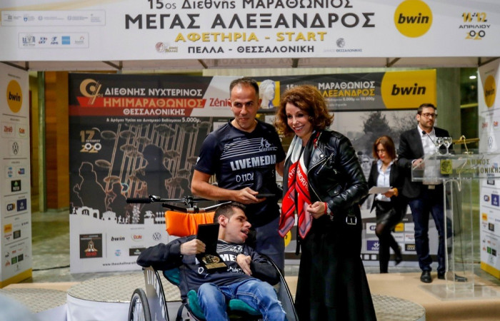 - Ο 30χρονος Χρήστος Μπεντιούλης ο οποίος είναι καθηλωμένος σε αναπηρικό αμαξίδιο χωρίς να μπορεί να κινήσει τα άκρα του ή να εκφράσει με λέξεις όσα σκέφτεται, αλλά συμμετέχει κάθε χρόνο στη διοργάνωση, χάρη στον φίλο του, Θωμά Τάτσιο, ο οποίος σπρώχνει το αμαξίδιο.