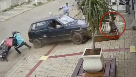 Πριν την παράσυρση της 5χρονης το εκτός ελέγχου αυτοκίνητο φαίνεται να παρασύρει και έναν μοτοσυκλετιστή, τον οποίο ρίχνει στο έδαφος. Αν και η τζαμαρία έγινε θρύψαλλα, το κορίτσι που έπεσε πάνω σε ένα κάθισμα φαίνεται να σηκώνεται όρθιο αμέσως μετά την παράσυρσή της και να πέφτει στην αγκαλιά ενός άνδρα, ο οποίος είχε αποφύγει την τελευταία στιγμή το αυτοκίνητο με τον μεθυσμένο οδηγό. Σύμφωνα με την αστυνομία η παράσυρση της 5χρονης, η οποία ευτυχώς δεν τραυματίστηκε βαριά, σημειώθηκε το περασμένο Σάββατο στην επαρχία Μπονίτο της Βραζιλίας.