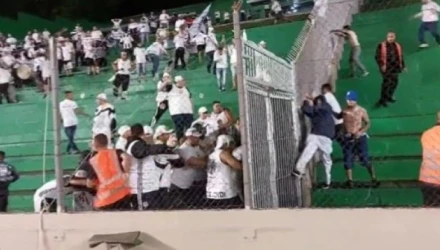 Μερίδα οπαδών της Σάντος σκαρφάλωσαν στα κάγκελα, πήραν πανό κι άρχισαν να κινούνται απειλητικά προς εκείνους της Γκρέμιο, υποχρεώνοντας τις αστυνομικές δυνάμεις να επέμβουν για να ηρεμήσει η κατάσταση και να μπορέσουν οι ομάδες να επιστρέψουν στο γήπεδο για την έναρξη του β' μέρους.