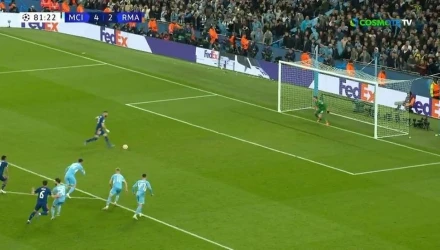 Ο Μπενζεμά με απόλυτη ψυχραιμία και με εκτέλεση αλά Πανένκα, μείωσε σε 4-3 από τα 11 βήματα για τη Ρεάλ.