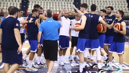 Ο Βασίλης Σπανούλης είχε στη διάθεσή του μόλις εννιά παίκτες, καθώς αδειούχοι είναι οι διεθνείς που έπαιξαν στους τελικούς και ο Γιάννης Αντετοκούνμπο, που θα μπουν από την Τετάρτη στις επάλξεις.Έτσι από τους 19 παίκτες της προεπιλογής παρόντες ήταν μόνο οι Βασίλης Τολιόπουλος, Βασίλης Χαραλαμπόπουλος, Μιχάλης Λούντζης, Δημήτρης Μωραΐτης, Νίκος Χουγκάζ, Γιάννης Κουζέλογλου, Γιώργος Τανούλης, Λευτέρης Μαντζούκας και Νεοκλής Αβδάλας.