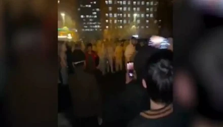 Τα πλάνα δείχνουν πλήθος εργαζόμενων να διαδηλώνει σε δρόμο και ορισμένους από αυτούς να έρχονται αντιμέτωποι με ανθρώπους της ασφάλειας που φορούν ολόσωμες λευκές προστατευτικές στολές και άλλους αστυνομικούς με εξαρτύσεις μονάδων αντιμετώπισης ταραχών.