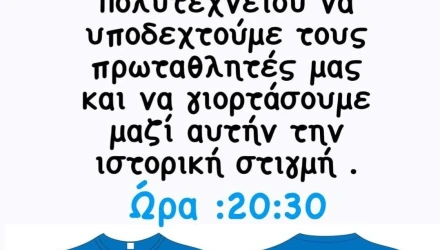 Οι φίλοι της ομάδας ετοιμάζουν υποδοχή στους πρωταθλητές την Κυριακή στις 20.30 στο κέντρο της Ευκαρπίας στην Πολυτεχνείου, για να γιορτάσουν όλοι μαζί αυτή την ιστορική στιγμή για τον σύλλογο