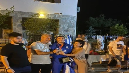 Ο 18χρονος αθλητής των ΓΣ Μανδρών έκανε μια τεράστια βολή στα 79.11μ., έσπασε το ατομικό του ρεκόρ και κατέγραψε την κορυφαία επίδοση στον κόσμο για φέτος. Το απόγευμα της Τετάρτης (9/8) τον περίμεναν φίλοι, συγγενείς και συγχωριανοί του στο αεροδρόμιο «Μακεδονία» όπου και τον αποθέωσαν.