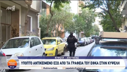 Ύποπτο αντικείμενο εντοπίστηκε έξω από τον ΕΦΚΑ Κυψέλης, γεγονός που οδήγησε στον αποκλεισμό της περιοχής από τις Αρχές. Σύμφωνα με τις πρώτες πληροφορίες από την έρευνα των ΤΕΕΜ η ύποπτη σακούλα περιείχε γκαζάκι και εύφλεκτο υγρό.